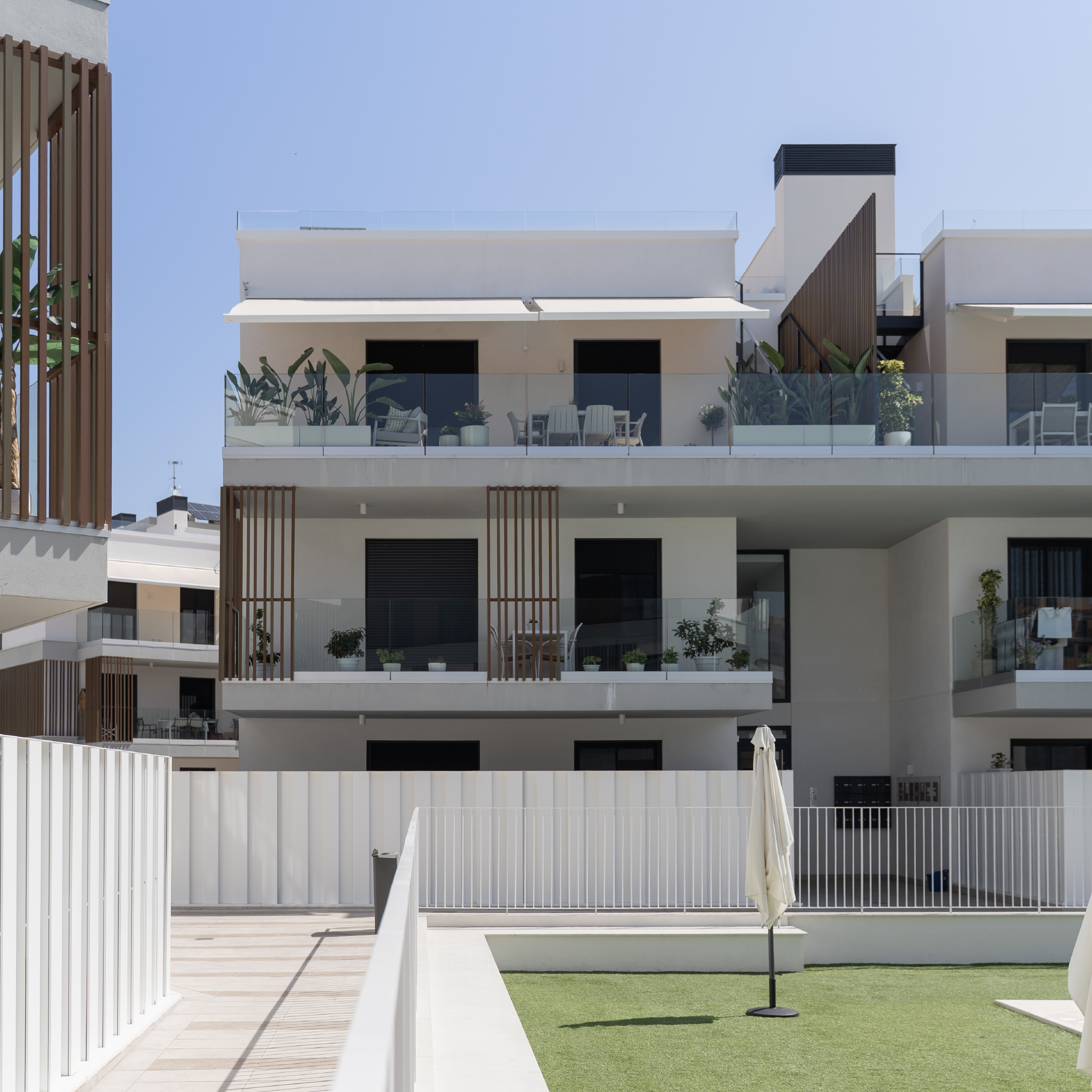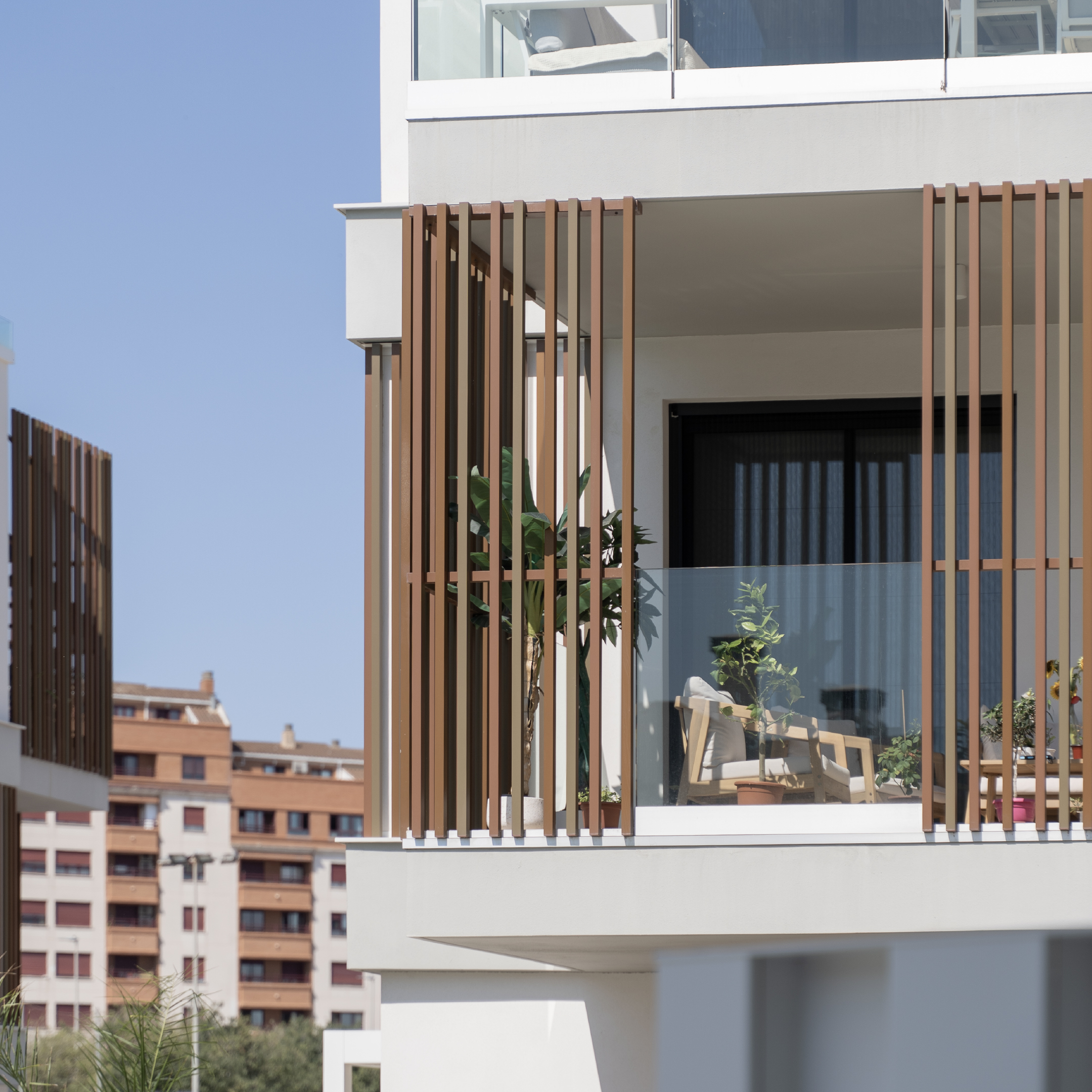 Alutek ha sido clave en la ejecución del moderno complejo residencial Lledó Village en Castellón, siendo responsable de la fabricación e instalación integral de sus cerramientos. El proyecto destaca por la implementación de ventanas correderas de grandes dimensiones que optimizan la luminosidad y la eficiencia energética. Además, se utilizaron celosías de lamas de aluminio para dotar a la fachada de una estética contemporánea y proporcionar un sistema eficaz de protección solar pasiva. Finalmente, la seguridad y la elegancia de las vistas se aseguraron mediante la instalación de barandillas de vidrio con sujeción minimalista en perfiles de aluminio